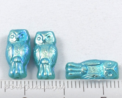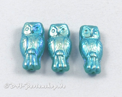 Glasperlen Eulen Türkis Full AB 14mm - 10 Stück